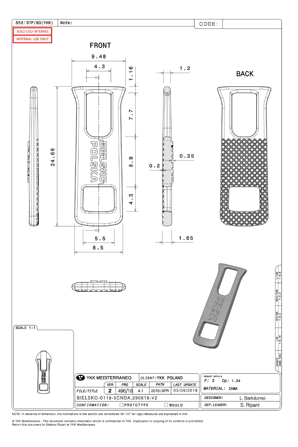 BIELSKO POLSKA 750FP LOGO FOR DOWN JACKET